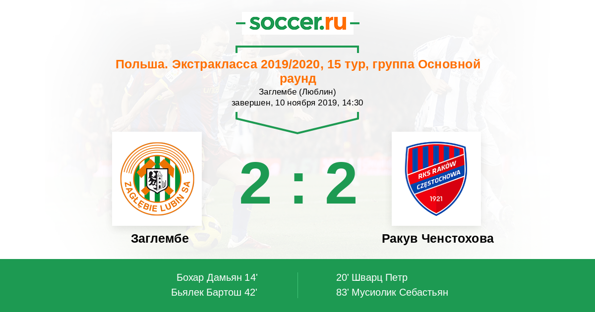 14' (1:0) Бохар Дамьян (39) (Бьялек Бартош (21))