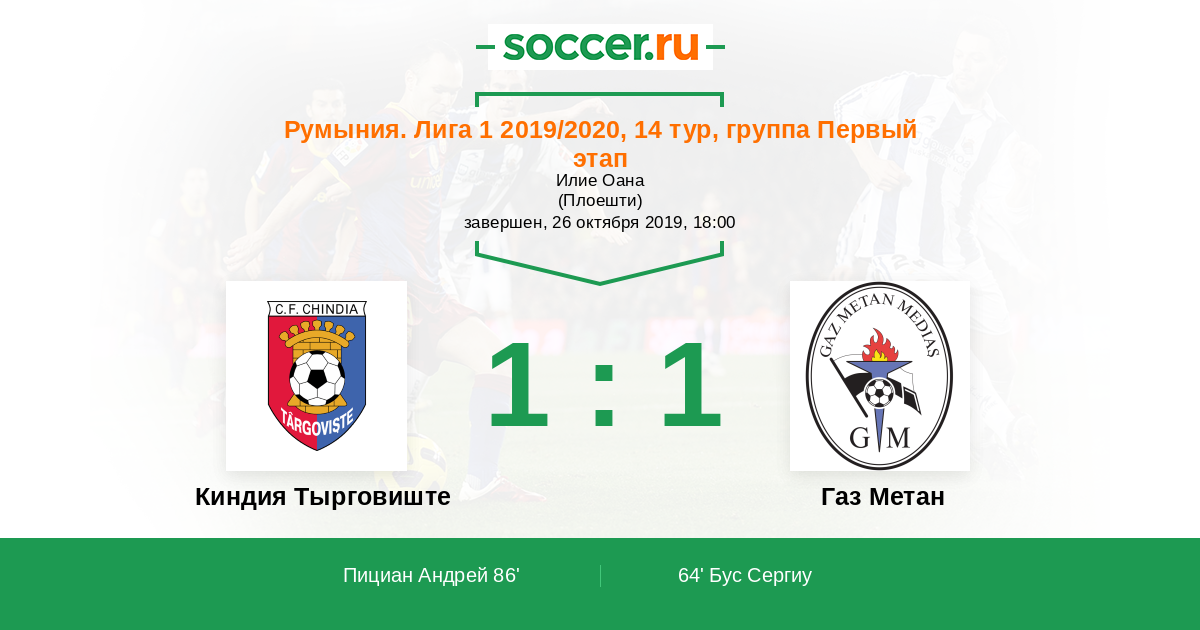 64' (0:1) Бус Сергиу (9)