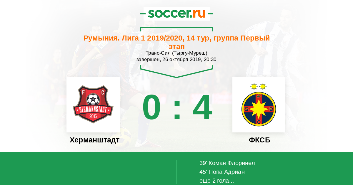 45' (0:2) Попа Адриан (88) (Коман Флоринел (7))