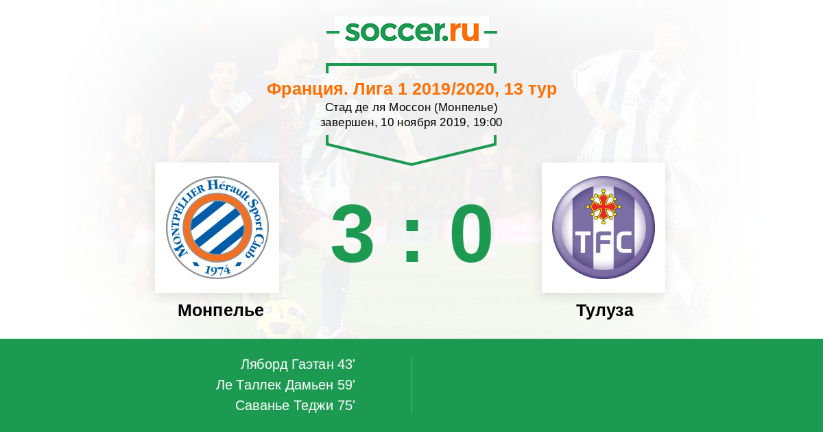 43' (1:0) Ляборд Гаэтан (10) (Делор Анди (9))