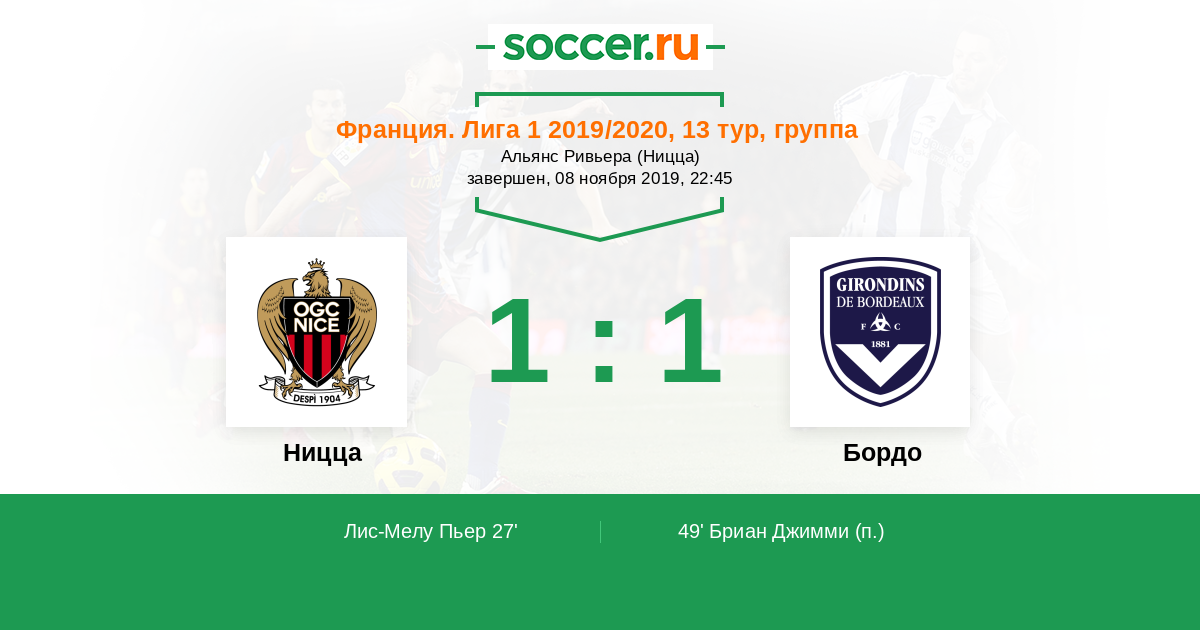27' (1:0) Лис-Мелу Пьер (8) (Атал Юсеф (20))