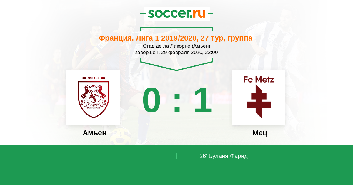 26' (0:1) Булайя Фарид (27) (Пажо Венсан (14))