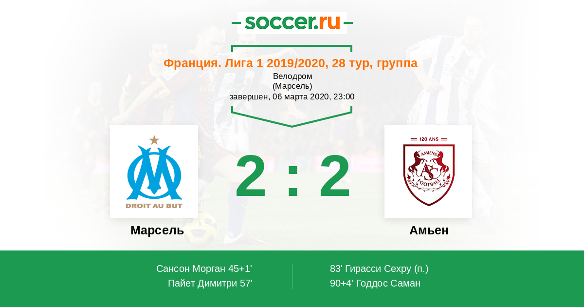 57' (2:0) Пайет Димитри (10) (Сансон Морган (8))