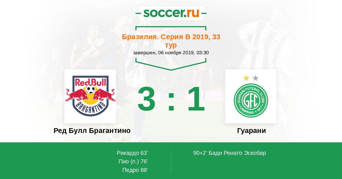 63' (1:0) Рикардо (37) (Клаудиньо (39))
