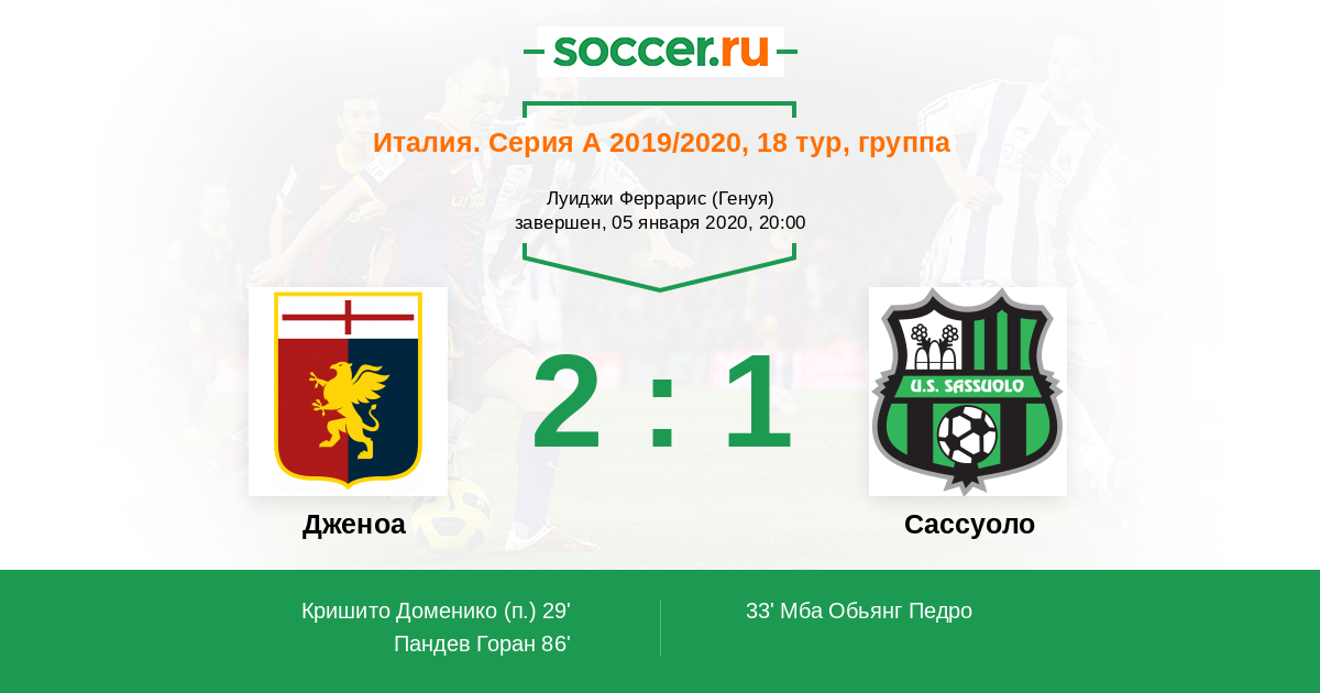 33' (1:1) Мба Обьянг Педро (14) (Локателли Мануэль (73))