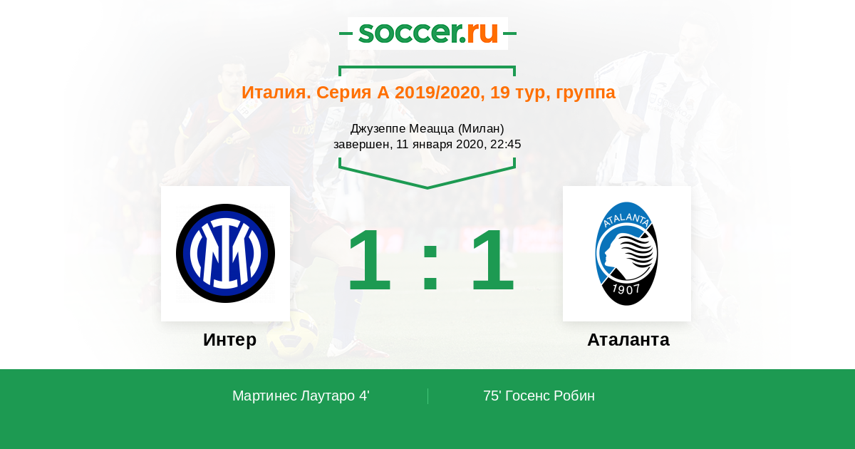 4' (1:0) Мартинес Лаутаро (10) (Лукаку Ромелу (9))