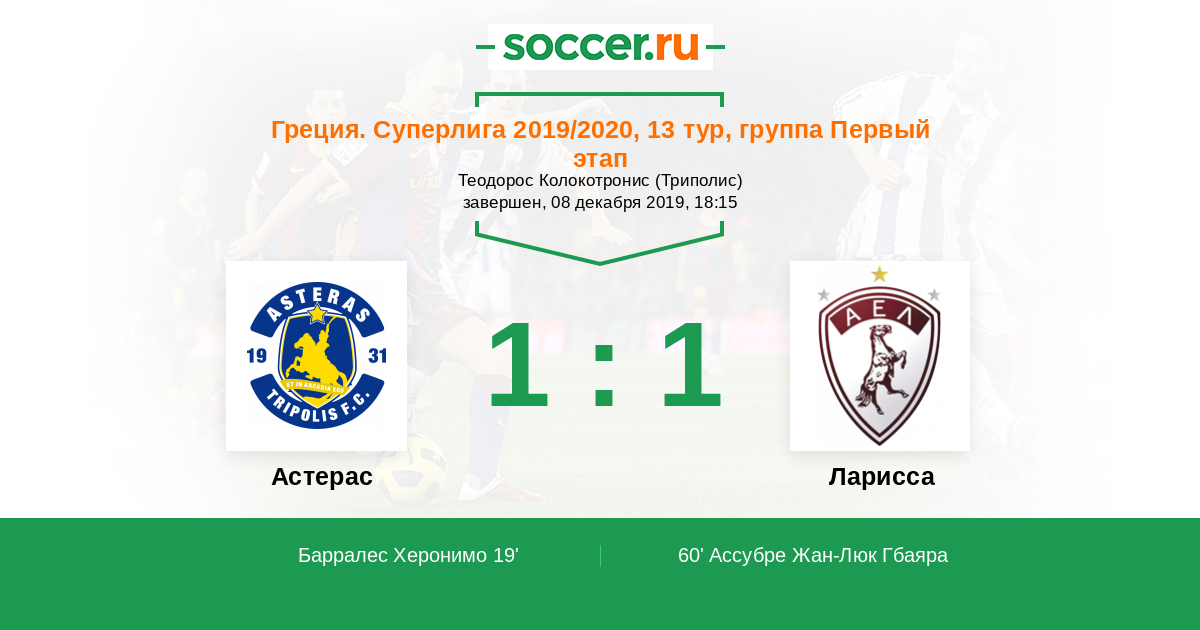 19' (1:0) Барралес Херонимо (30) (Капилья Энеко (5))