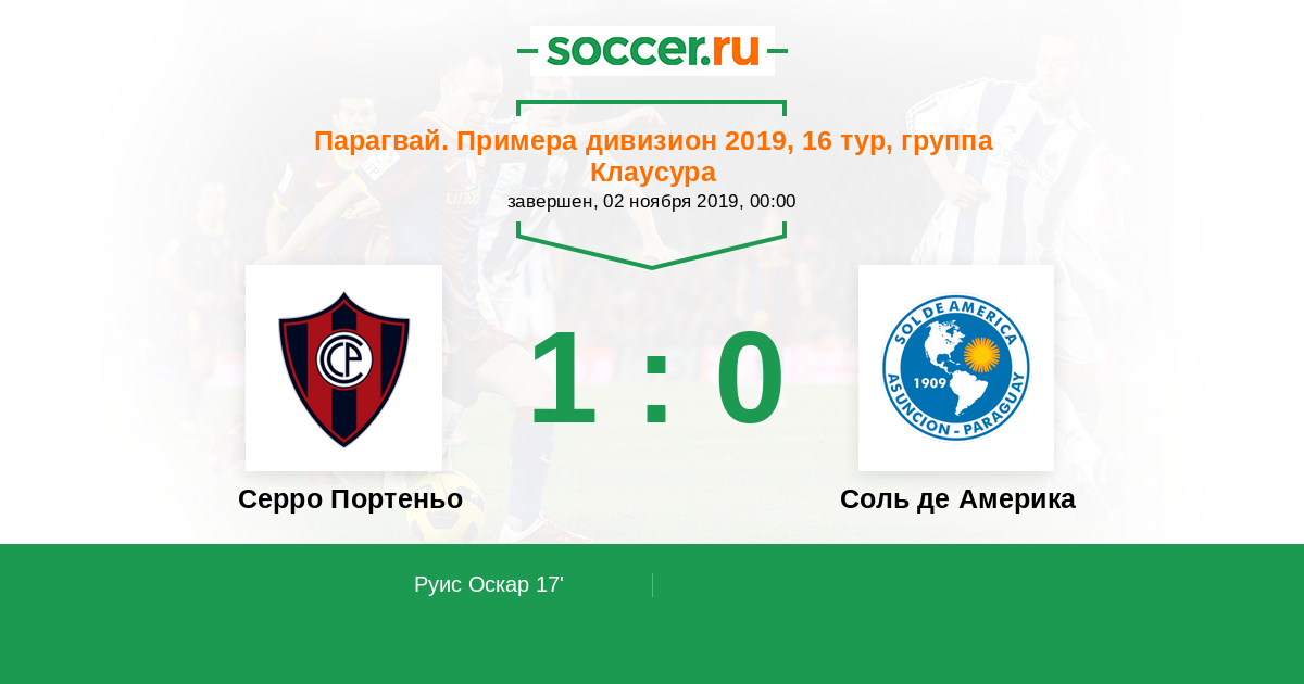 17' (1:0) Руис Оскар (11) (Паниагуа Игнасио (38))