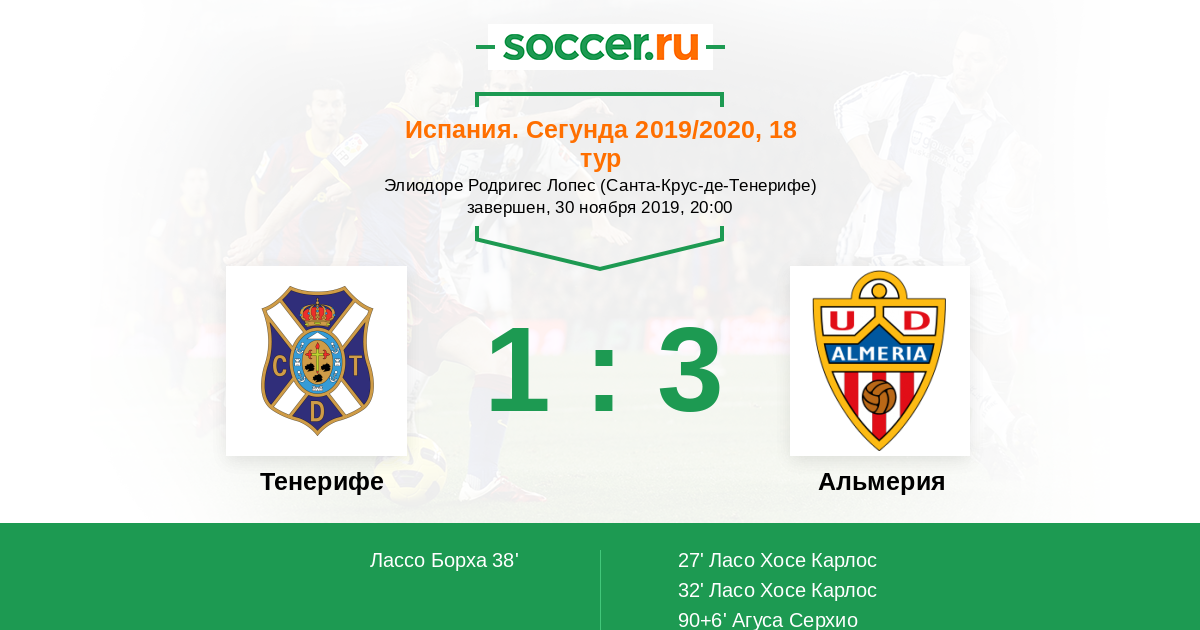 32' (0:2) Ласо Хосе Карлос (16) (Муньос Хуан (11))