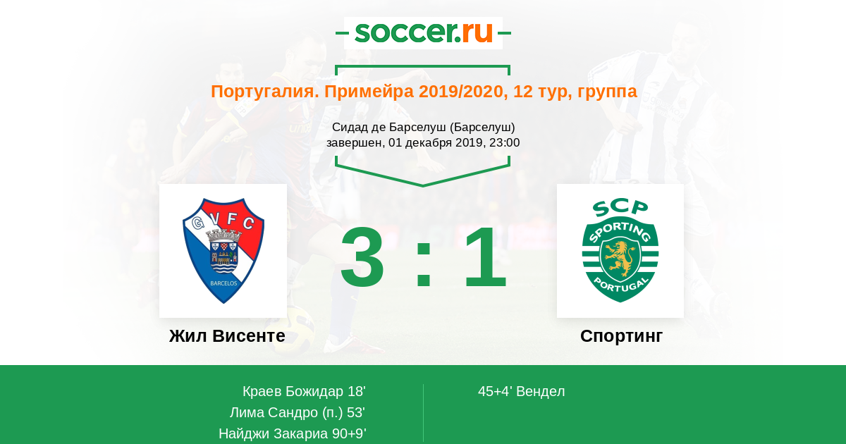 45+4' (1:1) Вендел (37) (Фернандеш Бруну (8))