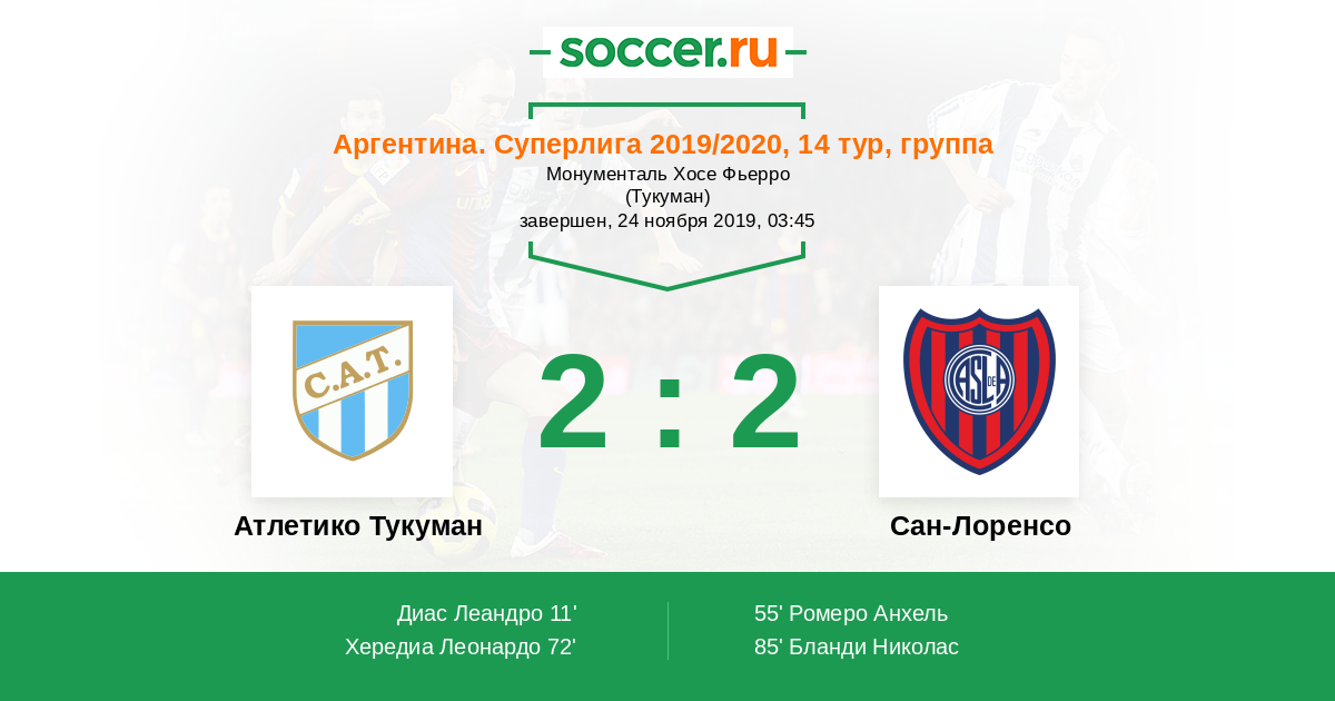 72' (2:1) Хередиа Леонардо (17) (Толедо Хавьер (22))