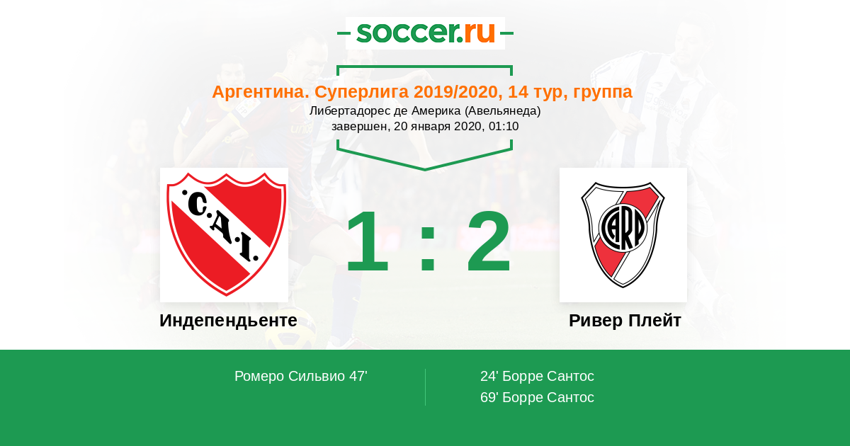24' (0:1) Борре Сантос (19) (Монтиэль Гонсало (29))