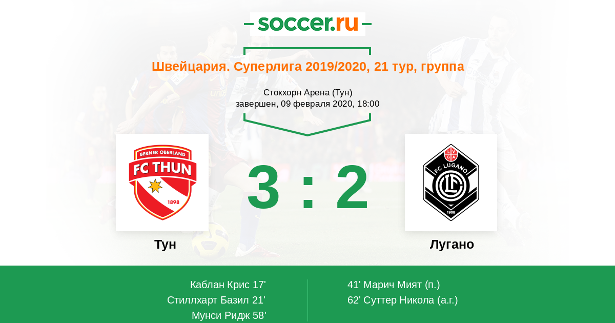 62' (3:2) Автогол Суттер Никола (34)