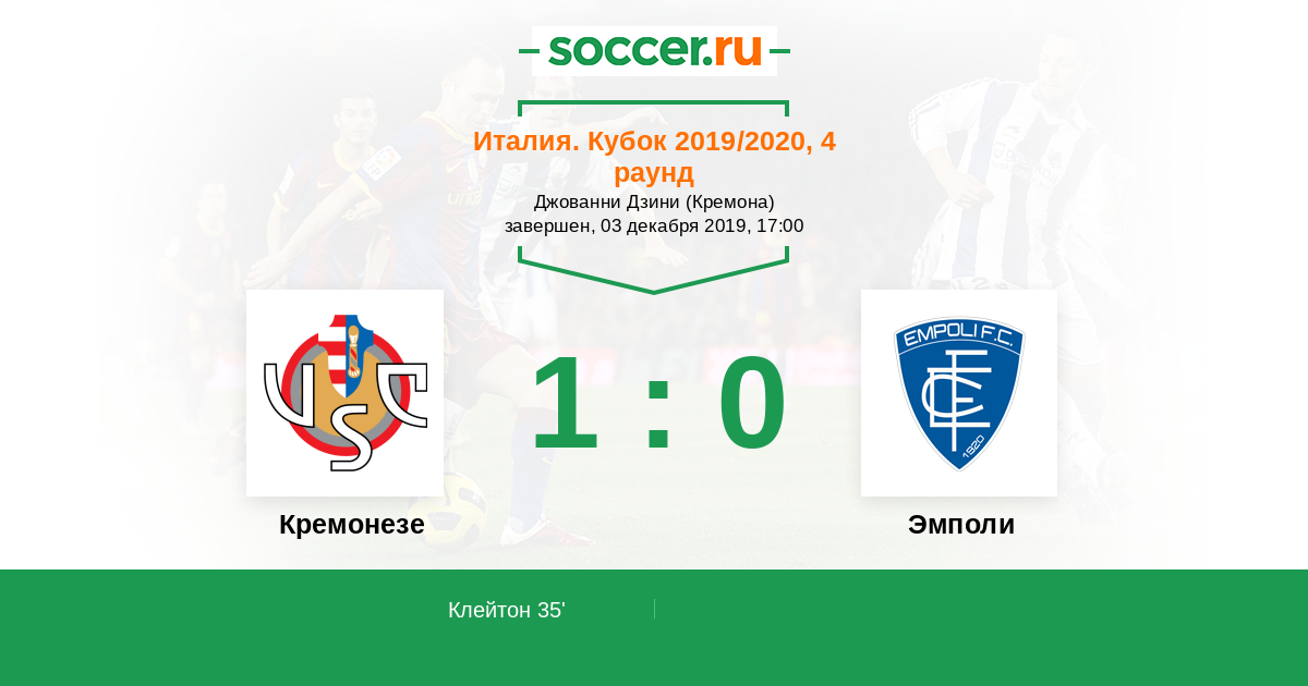 35' (1:0) Клейтон (3) (Кастаньетти Микеле (19))