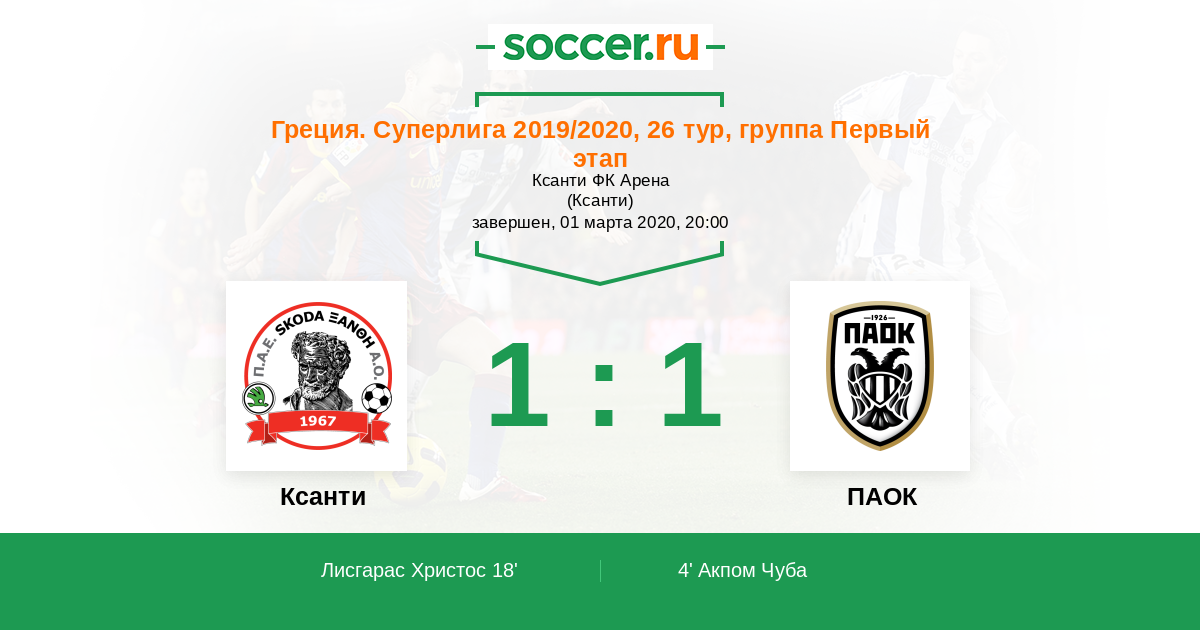 18' (1:1) Лисгарас Христос (31) (Эдуардо (12))