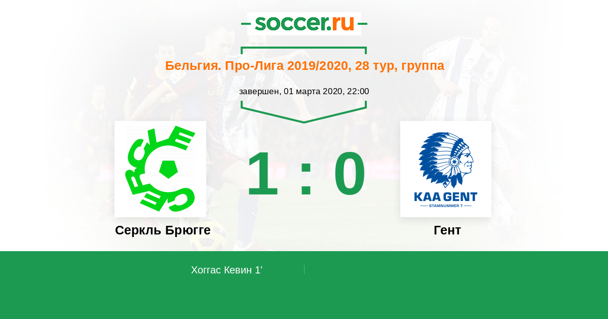 1' (1:0) Хоггас Кевин (20) (Де Бельдер Дилан (9))
