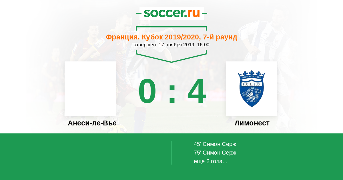 45' (0:1) Симон Серж