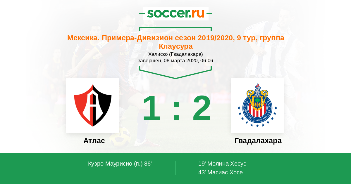 19' (0:1) Молина Хесус (20)