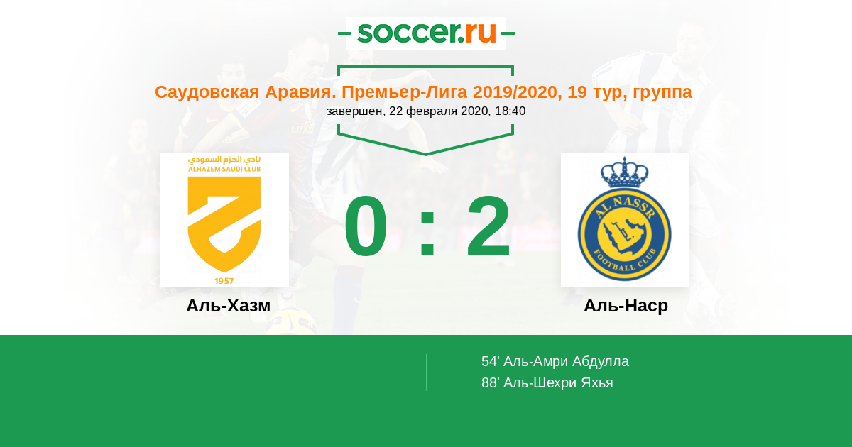 54' (0:1) Аль-Амри Абдулла (5) (Аль-Ганнам Султан (2))