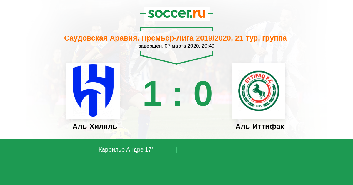 17' (1:0) Каррильо Андре (19) (Аль-Даусари Салем (29))