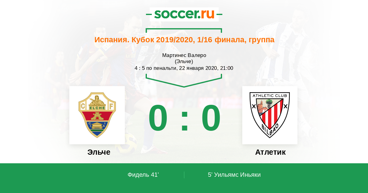5' (0:1) Уильямс Иньяки (9) (Мартинес Иньиго (4))