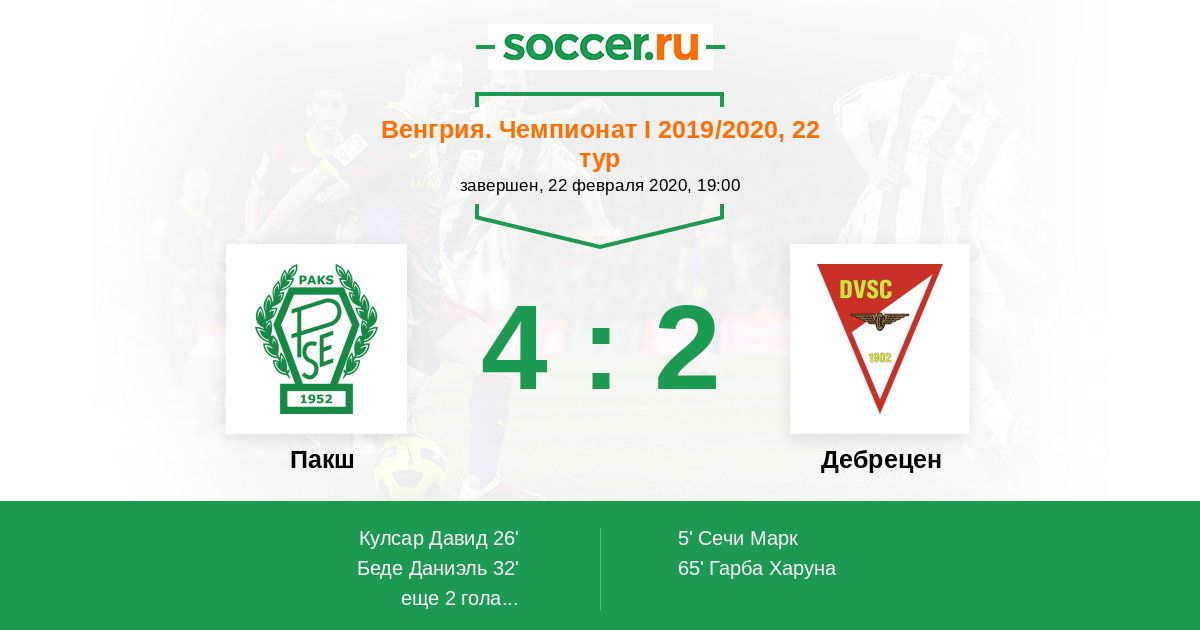 Запасные: 20 Шайбан Мате (с 73'), 10 Харашти Жолт (с 77'), 22 Виндекер Йозеф (с 81'), 5 Гевай Жолт, 8 Тамаш Кечкеч, 32 Келемен Давид, 92 Чернянски Норберт