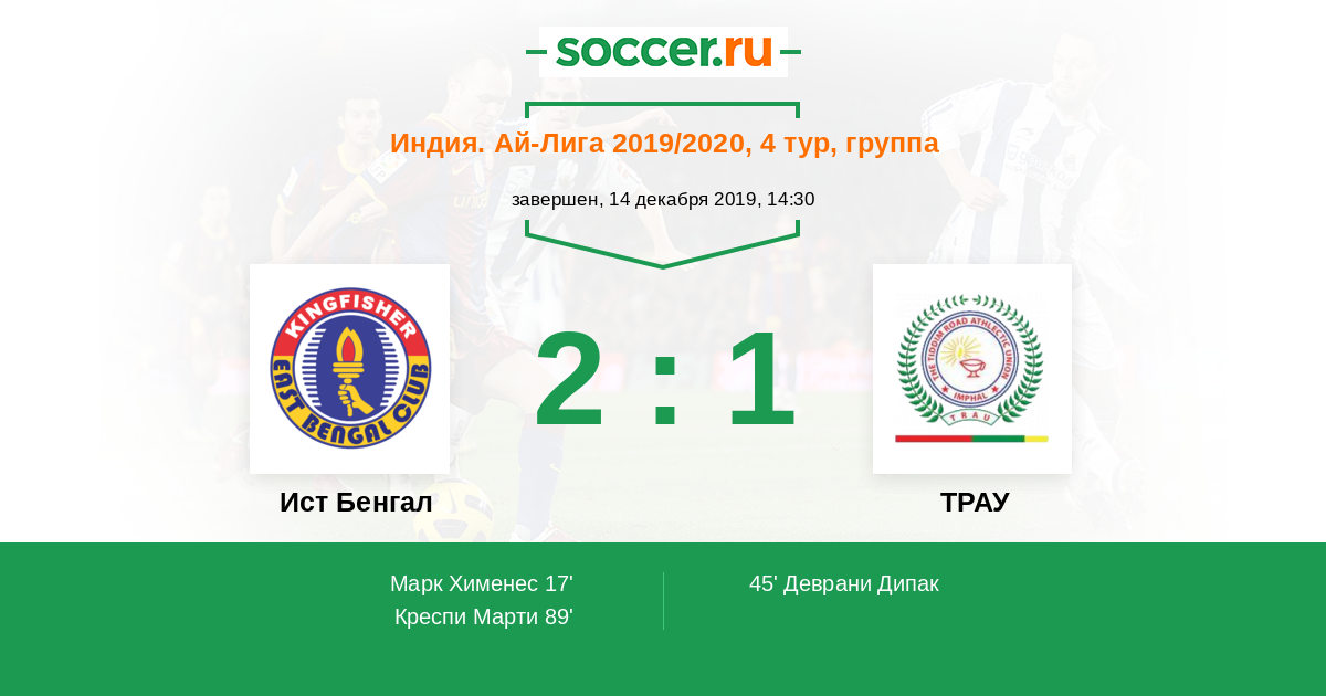 45' (1:1) Деврани Дипак (26) (Сингх Консам Пхалгуни (6))