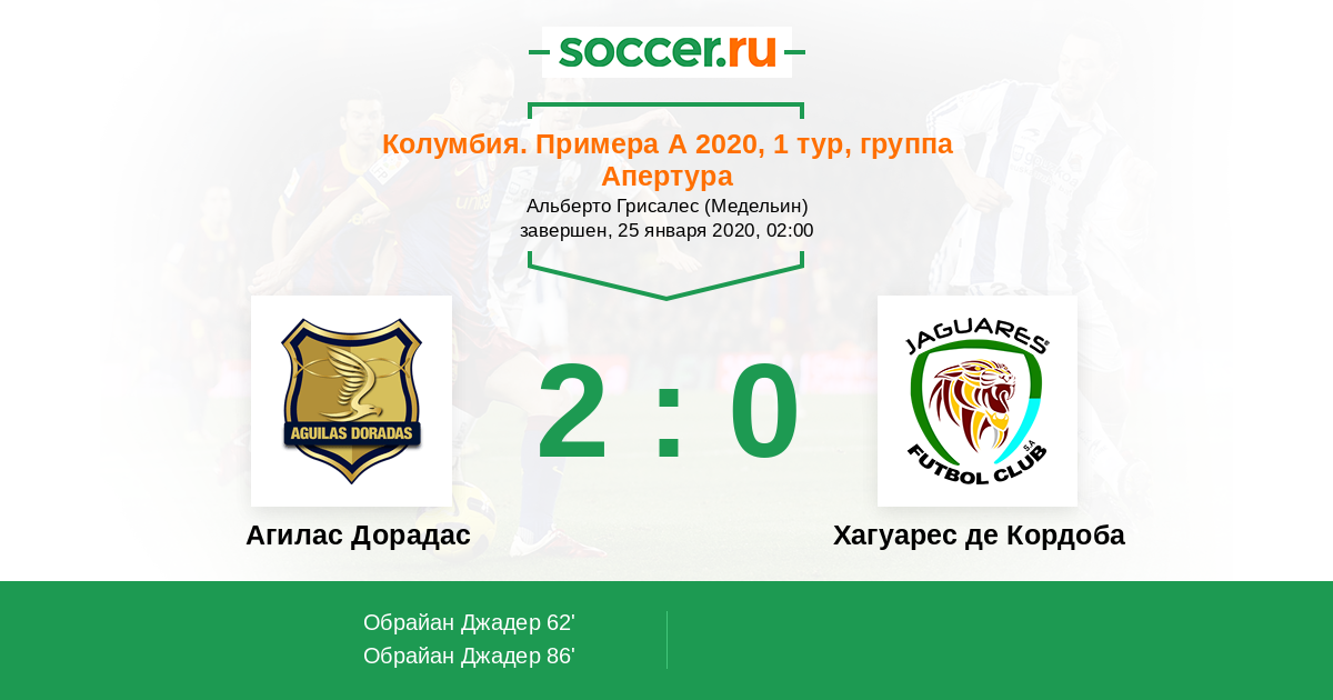 62' (1:0) Обрайан Джадер (8) (Рамирес Карлос (21))