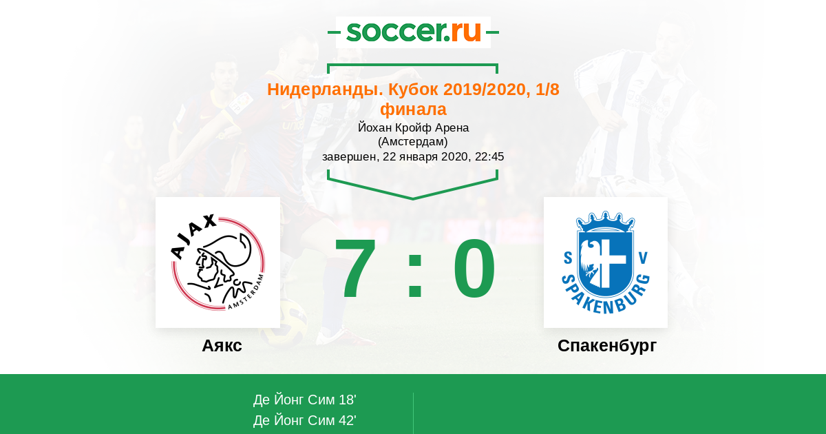 Запасные: 9 Хунтелар Клас-Ян (с 60'), 26 Эккеленкамп Юрген (с 61'), 37 Юнувар Наджи (с 75'), 11 Промес Квинси, 29 Гравенберх Райан, 41 Тимбер Журрьен, 2 Шуурс Перр, 47 Данило, 33 Котарски Доминик, 6 ван де Бек Донни, 3 Вельтман Йоэл, 35 Схерпен Кьелл
