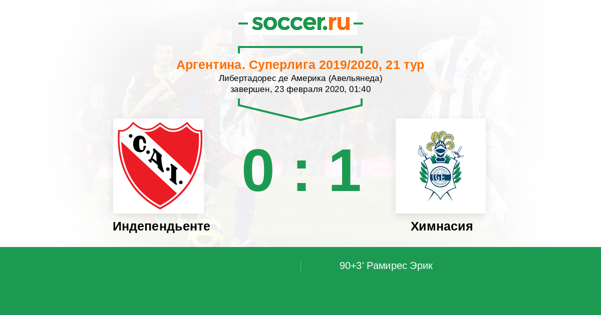 90+3' (0:1) Рамирес Эрик (43) (Муссис Франко (7))