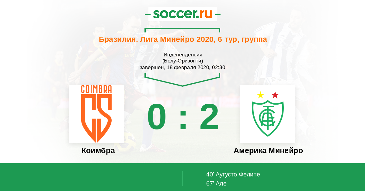 40' (0:1) Аугусто Фелипе (7) (Родольфо (9))
