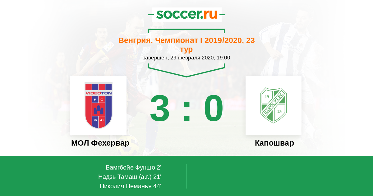 21' (2:0) Автогол Надзь Тамаш (14)