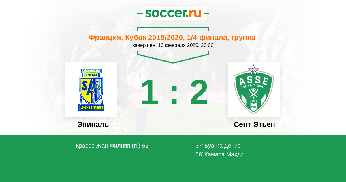 58' (0:2) Камара Махди (8) (Дебюши Матье (26))