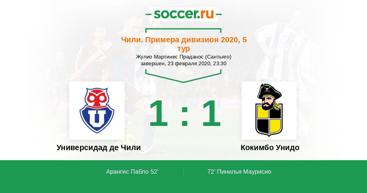 72' (1:1) Пинилья Маурисио (15) (Осорио Рауль (20))