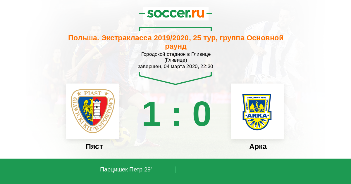 29' (1:0) Парцишек Петр (9)
