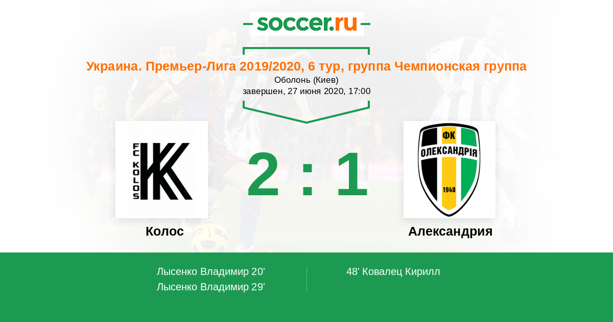 20' (1:0) Лысенко Владимир (7) (Морозко Евгений (10))