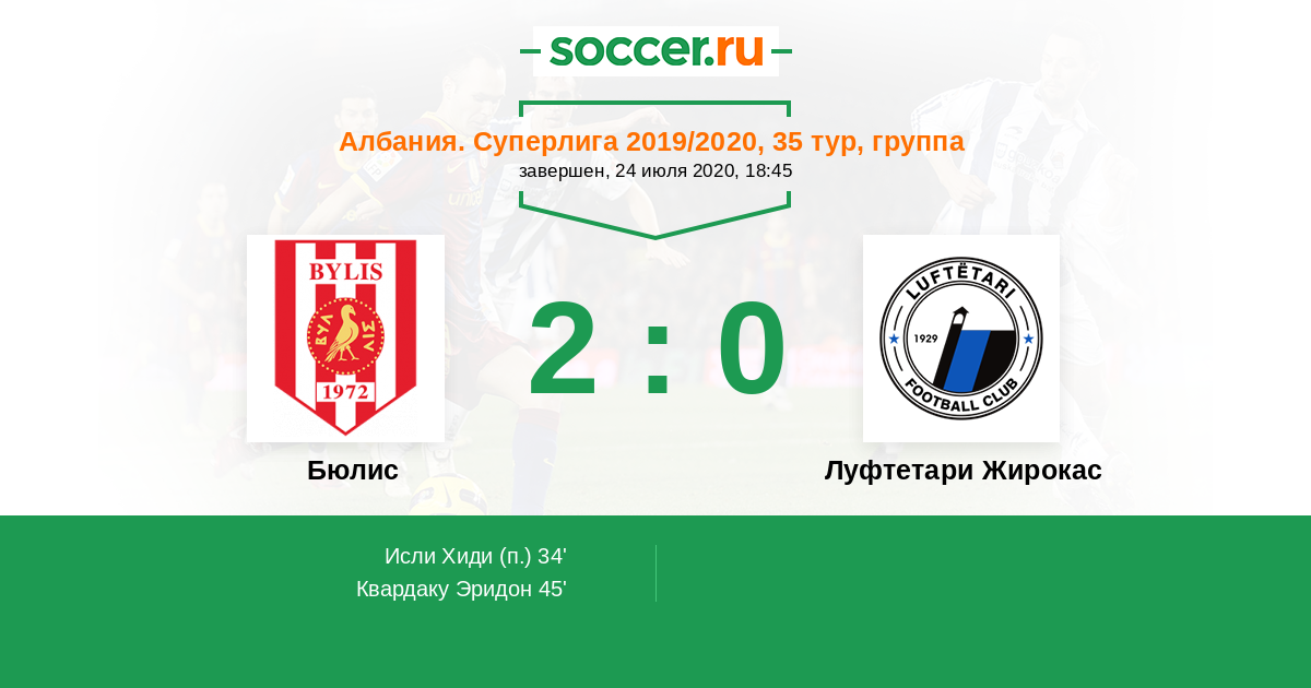 Запасные: Таирага Кабир (с 46'), Ахметай Алви (с 56'), Брахилика Микель (с 56'), Зенели Режильд (с 71'), Маладж Мухарем (с 85'), Демо Аурель, Кирани Авернольд, Строка Ренато