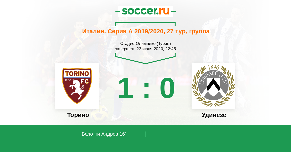 16' (1:0) Белотти Андреа (9) (Эдера Симоне (20))