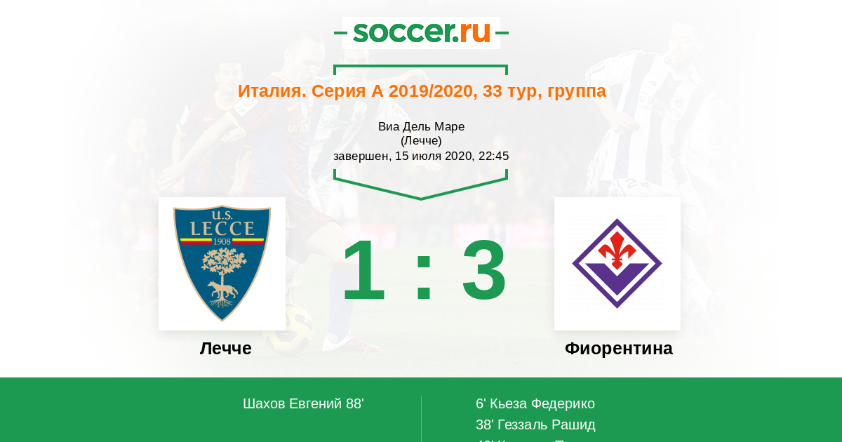 40' (0:3) Кутроне Патрик (63) (Кьеза Федерико (25))