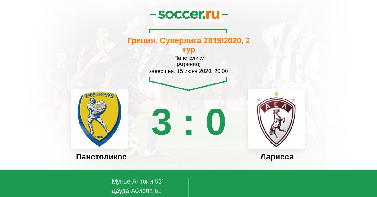 Запасные: 37 Цигарас Ангелос (с 12'), 8 Баи Мимито (с 79'), 18 Лусеро Адриан (с 86'), 12 Арийиби Гболи (с 86'), 28 Паррас Александрос, 9 Байрович Адмир, 20 Футопулос Димитриос, 14 Дуарте Фредерику, 31 Яннакопулос Никос