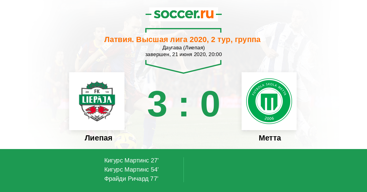54' (2:0) Кигурс Мартинс (49)