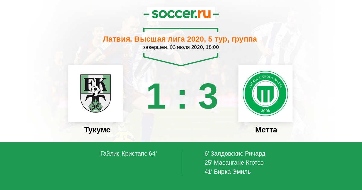 6' (0:1) Залдовскис Ричард (17)