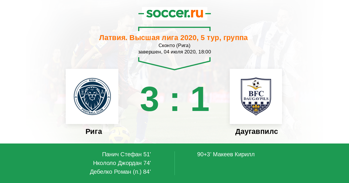 Запасные: 28 Джуришич Марко (с 34'), 35 Нкололо Джордан (с 46'), 18 Хора Якуб (с 46'), 3 Куракинс Антон (с 56'), 27 Дебелко Роман (с 82'), 5 Лайзанс Олег, 16 Пуринс Нильс