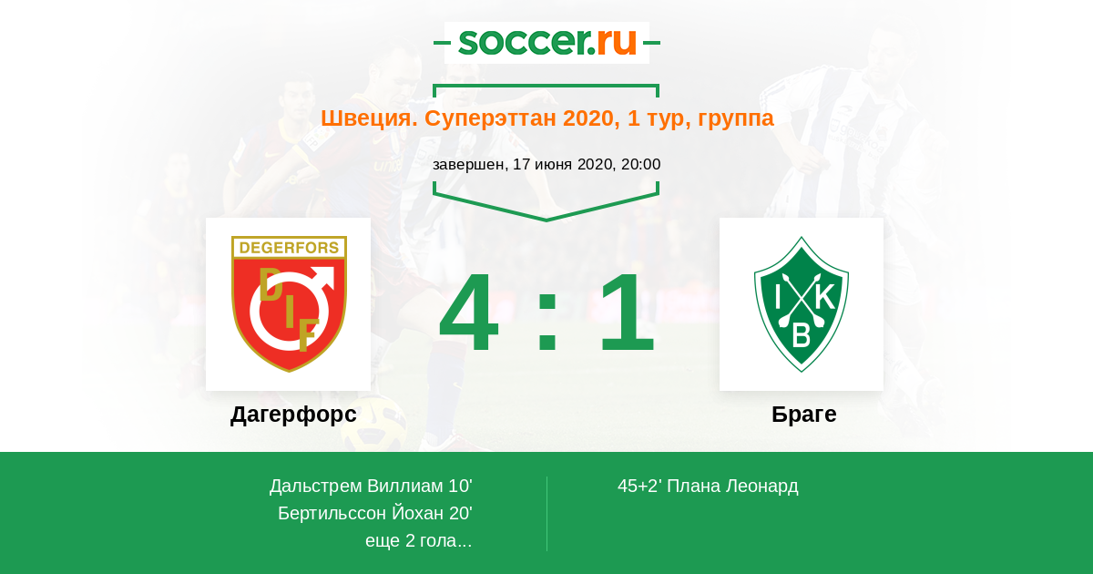 20' (2:0) Бертильссон Йохан (9)