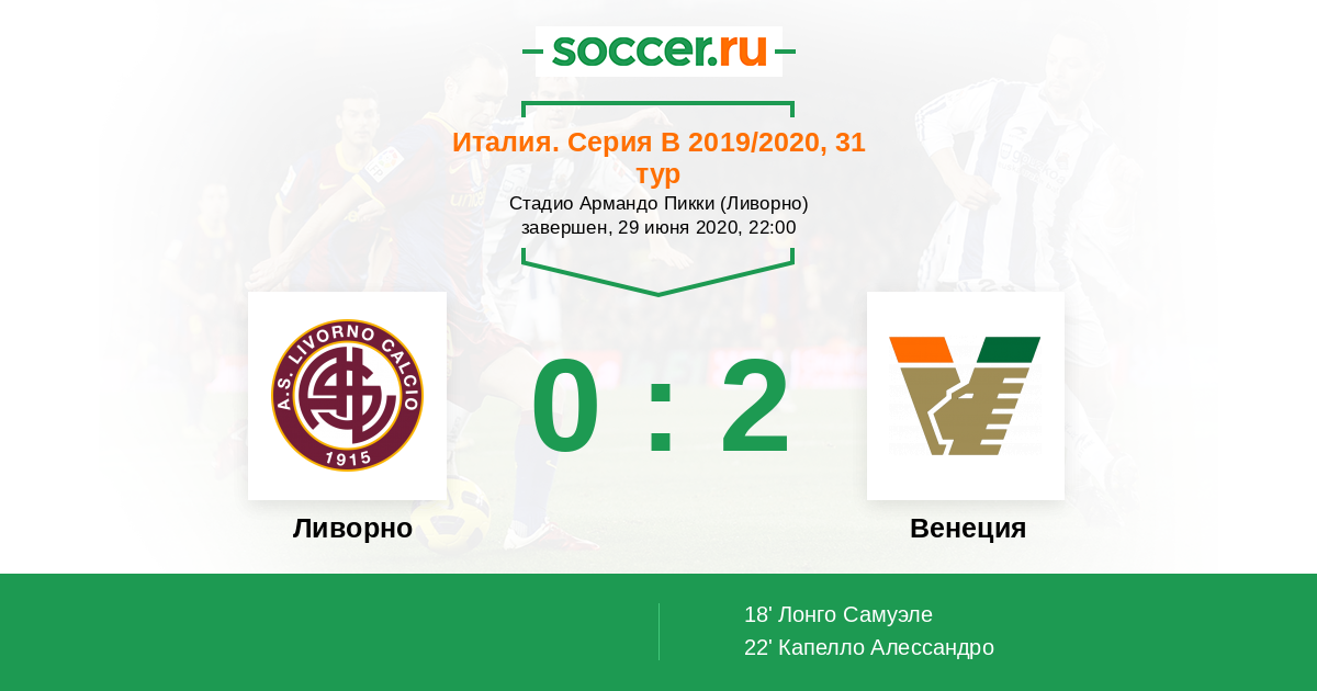 18' (0:1) Лонго Самуэле (19) (Лолло Лоренцо (25))
