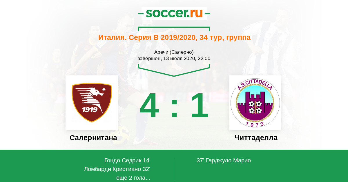 37' (2:1) Гарджуло Марио (20) (Вита Алессио (16))