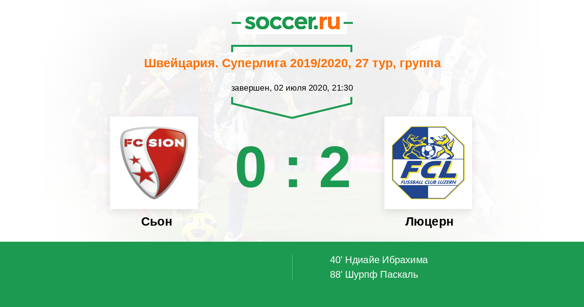 40' (0:1) Ндиайе Ибрахима (7) (Марджотта Франческо (9))