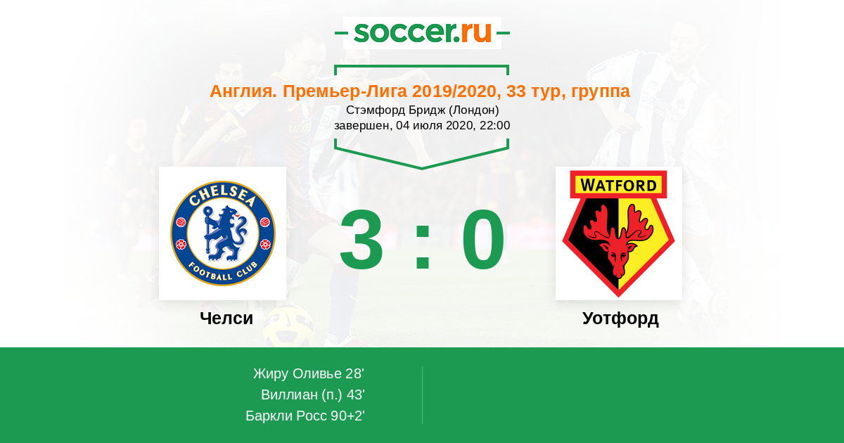 28' (1:0) Жиру Оливье (18) (Баркли Росс (8))