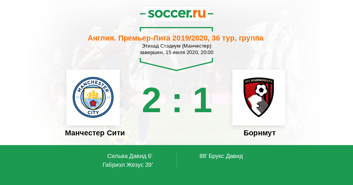 39' (2:0) Габриэл Жезус (9) (Сильва Давид (21))