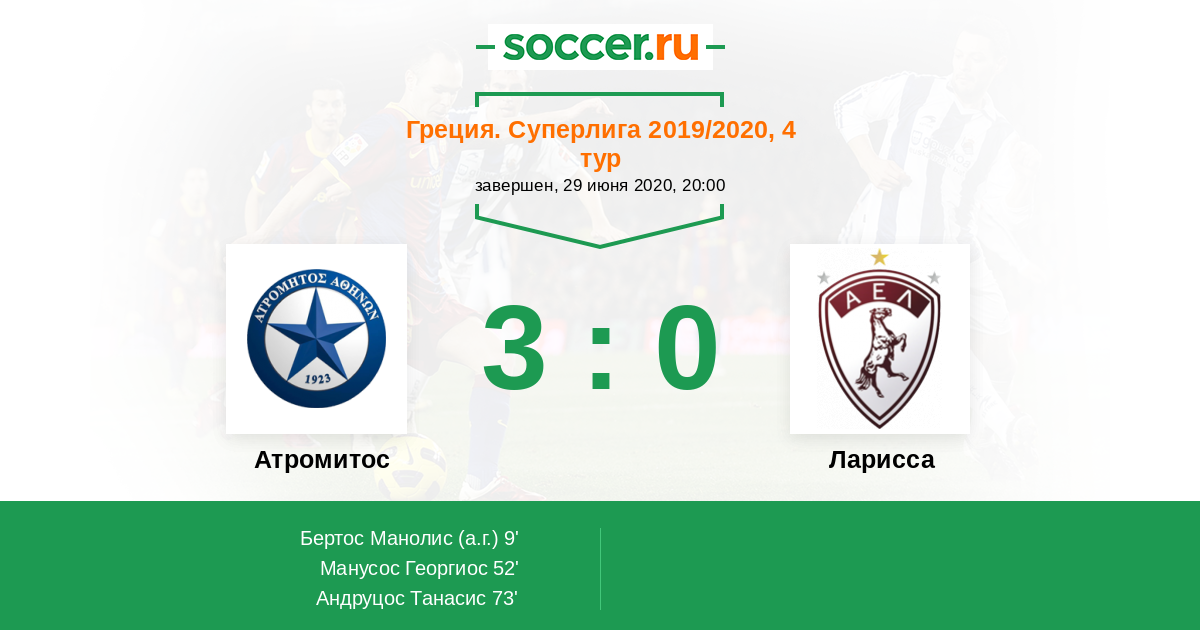 9' (1:0) Автогол Бертос Манолис (25)